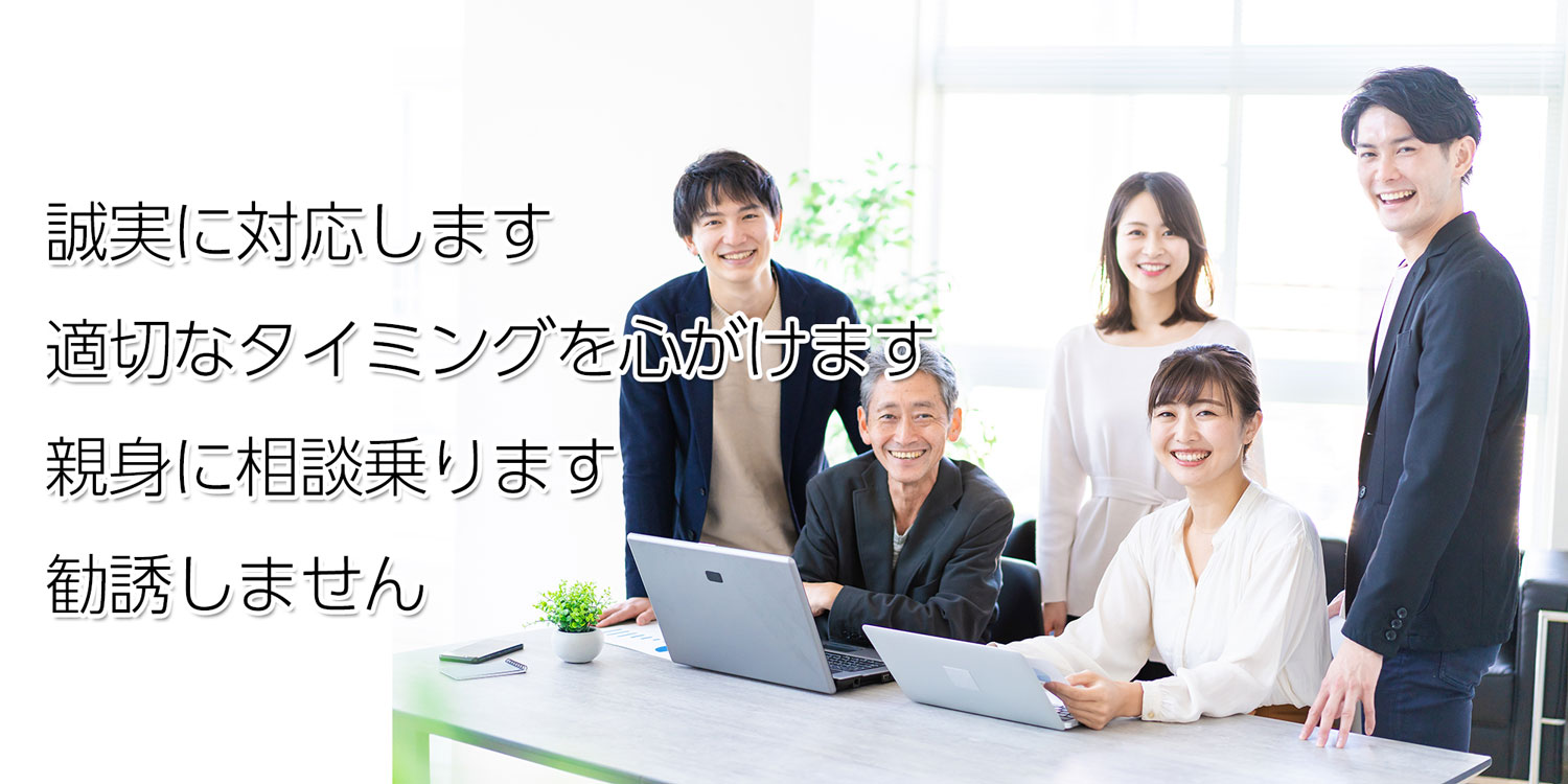 「当社は、無理な勧誘は一切行いません。お客様にご納得いただけるまで、じっくりとご相談に乗ります。」